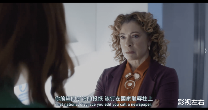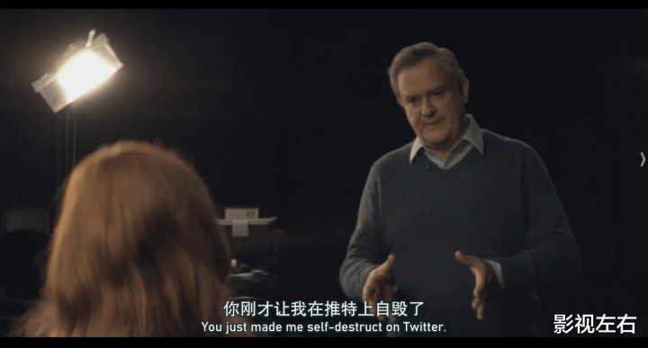 此外,在最后走出演播室的刹那,女主面对男主女儿的演绎又异常细腻。女主邀请男主女儿到演播室,在揭穿男主本质后,女主又用带着歉意、带点温柔同时又坚定无悔的语气告诉男主的女儿,“我知道,我理解你。但相信我,你会挺过去的”。之所以如此,是因为她们内心都长期崇拜着男主,但又经历了偶像的幻灭与不堪,但是女主走出了幻灭,所以她相信男主的女儿也能像她一样。
